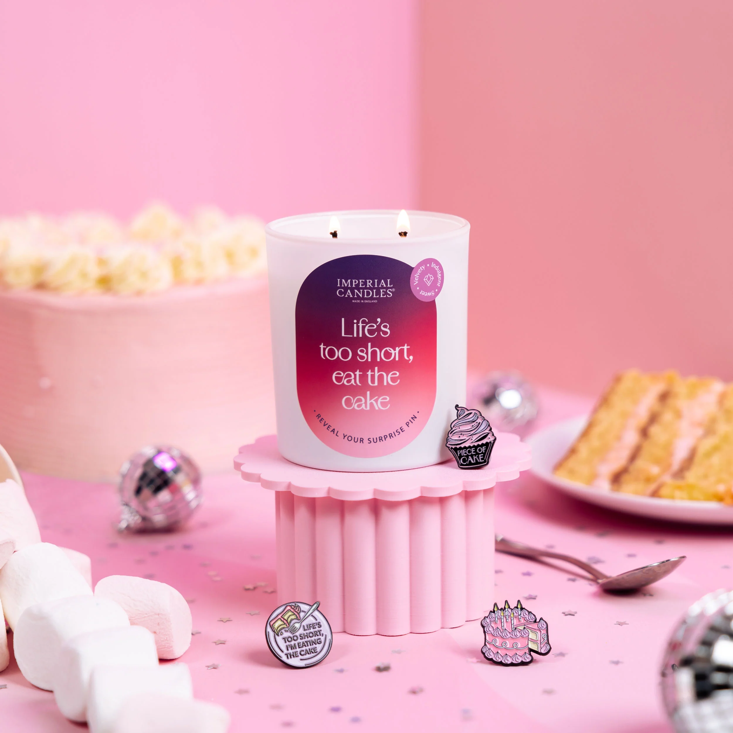 Surround yourself with the opulence of a bakery with a rich, sweet scented candle - the mouthwatering scent of buttercream, thick strawberry jam, pink frosting and French Vanilla. Light up, unveil your exclusive pin, and let the scent enhance your space and style.